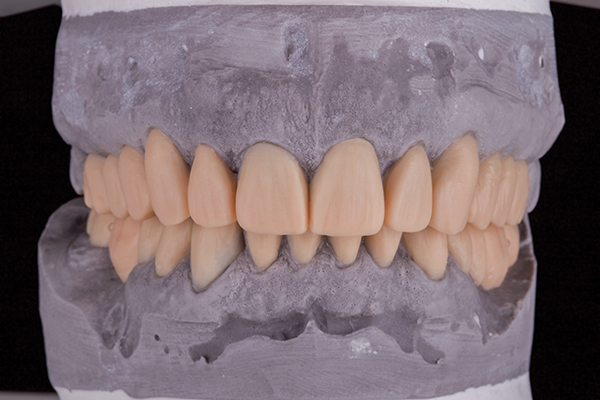 The teeth are typically retained by acrylic but may be completely made of a milled or printed material. Prepared tooth from damage. The crown restorations can be used to rebuild a single tooth or as a retainer for a fixed prosthesis.